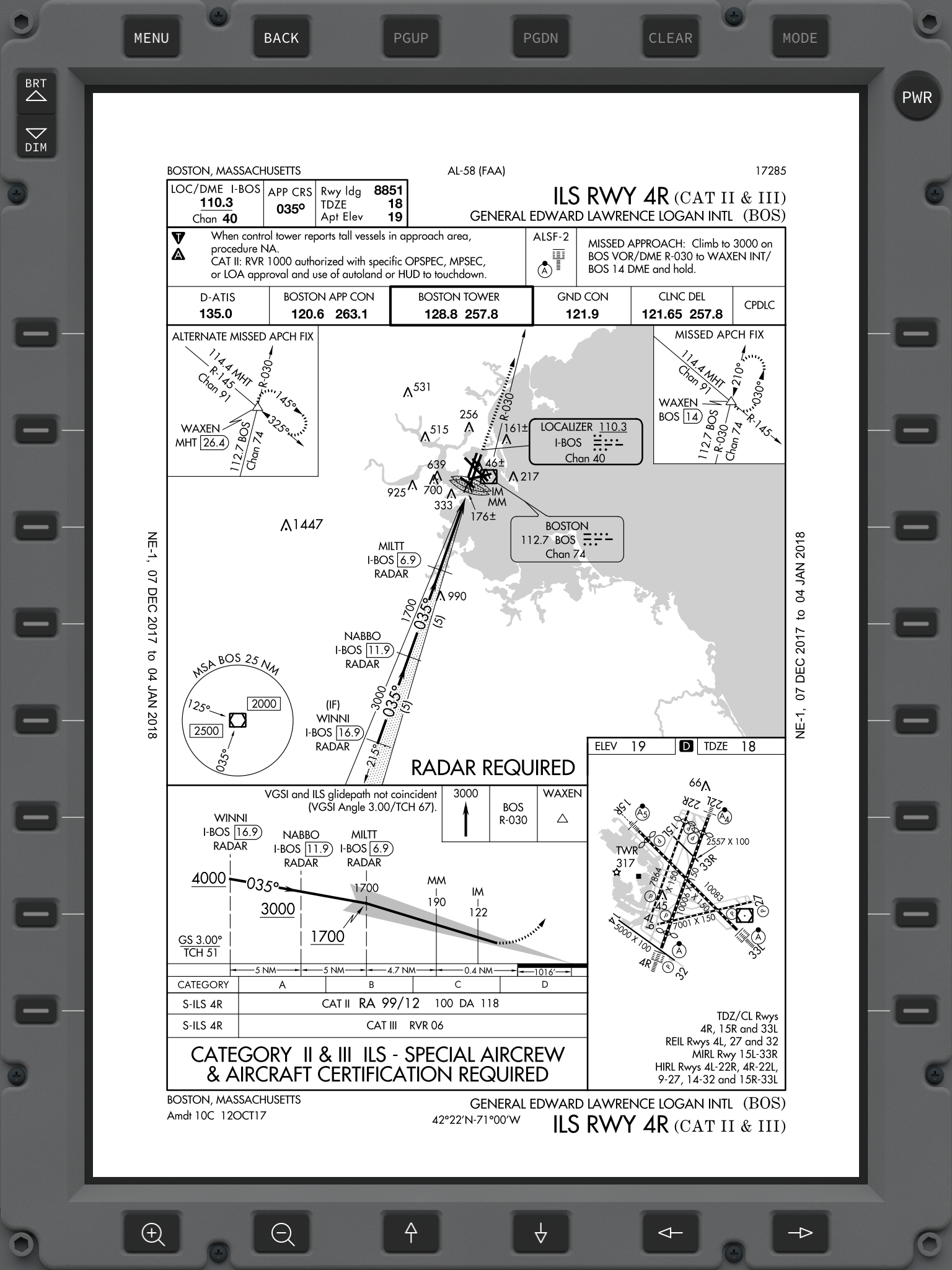 CHARTS allows you to access your own synched PFD approach plates, your Air Account uploaded charts, and over 4GB of US airport charts as published by the FAA.