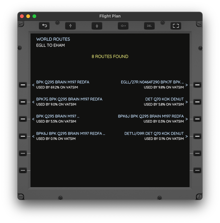 The Flight PlannerAirTrack comes with a built in flight planner which allows the creation and management of routes to use in flight. With a few quick steps you can create a plan, see statistics abouts each of its legs, and see it displayed and updated in app panels such as the navigation display. Depending on availability, some flight simulator planes may allow the reading of their own flight plan and sometimes writing to it. In this case AirTrack receives the loaded plan, and can update it when possible and supported.